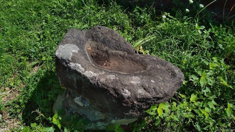 御手水は石をくり抜いたものです。水を運ばれて使われます。